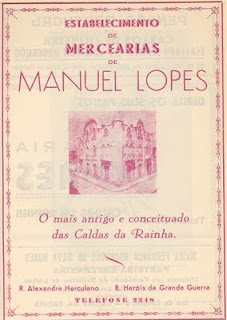 Este Postal editado pela Tip. Caldense em 1920 mostra-nos um magnifico edifício, do principio do século XX.Esta Casa foi fundada em 1903 por Manuel Lopes, tio do Dr. Júlio Lopes, que viria a ser Presidente da Câmara. Nos anos 50, deu lugar a um armazém de vinhos e actualmente várias lojas ocupam o rés-do-chão.
