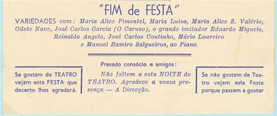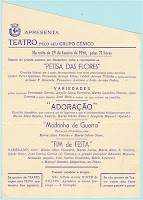 Este Cartaz, com 54 anos anuncia um programa variado levado à cena pelo Grupo Cénico, e como se pode constatar pelas imagens ampliadas, o elenco era de Luxo.