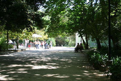 Consagrada a Nossa Senhora do Pópulo pela Rainha D. Leonor, este templo foi inicialmente concebido como capela privativa do Hospital, mas o rápido crescimento da povoação fez dela a Igreja Matriz das Caldas até quase aos nossos dias. Datada de 1500, foi planeada, tal como o Hospital Termal, pelo Mestre Mateus Fernandes (um dos arquitectos da Batalha) e possui uma arquitectura típica da primeira fase manuelina.A última fotografia (a cores) foi obtida a partir da entrada da antiga Escola Comercial e Industrial e deixa ver a recuperação que foi feita no palácio da Rainha.